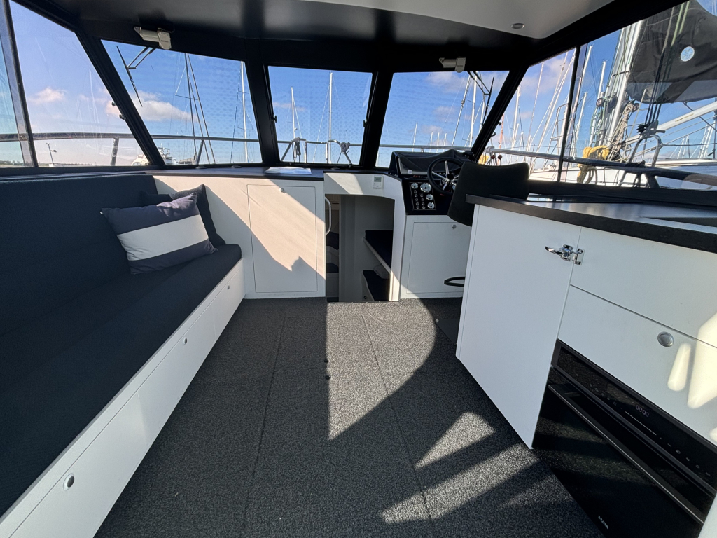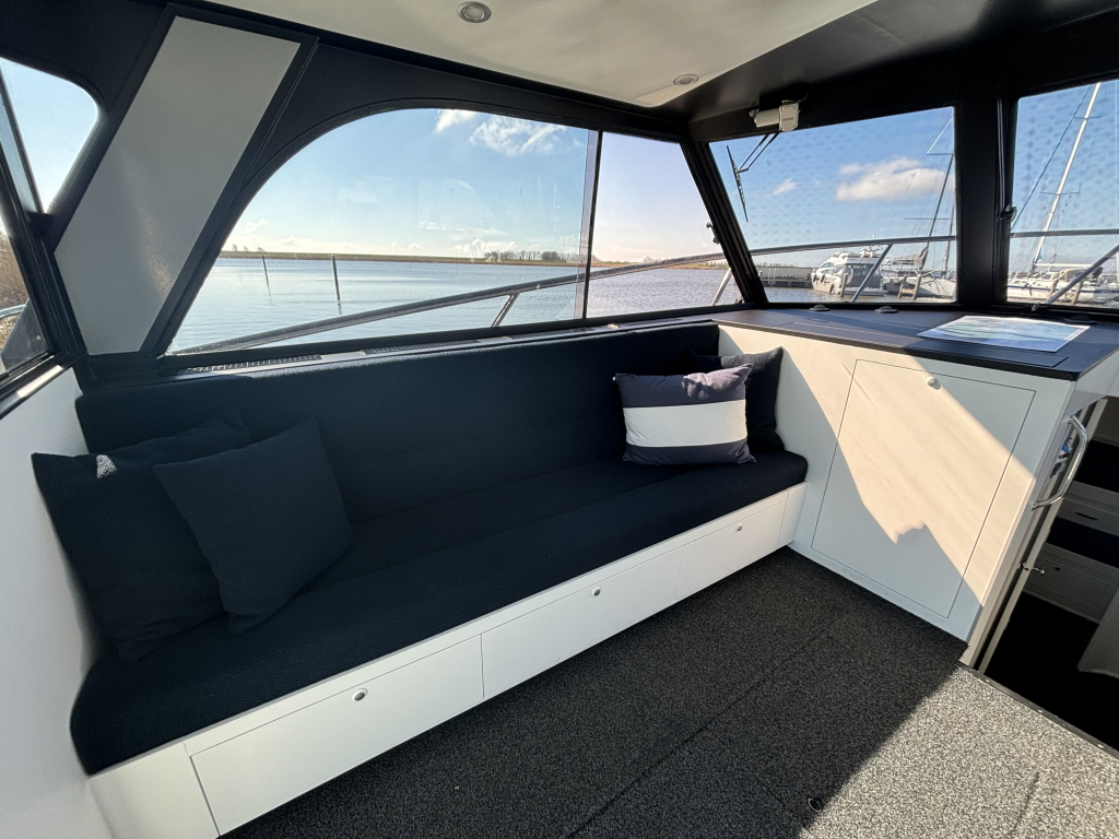 De boot heeft voldoende plaats en comfort voor 4 volwassenen. De hutten, salon, kuip en de prachtige flybridge zullen u aangenaam verrassen. De boot is zojuist afgemeerd in de verkoophaven van Lemmer Nautic en wacht op uw bezoek.